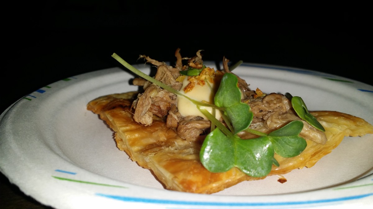 KIN SHOP Posted on October 24, 2014 by Nate Mack Post a comment or leave a trackback: Trackback URL. Braised Beef Brisket & Bone Marrow Taco with fried taro root, radish sprouts and yellow bean aioli